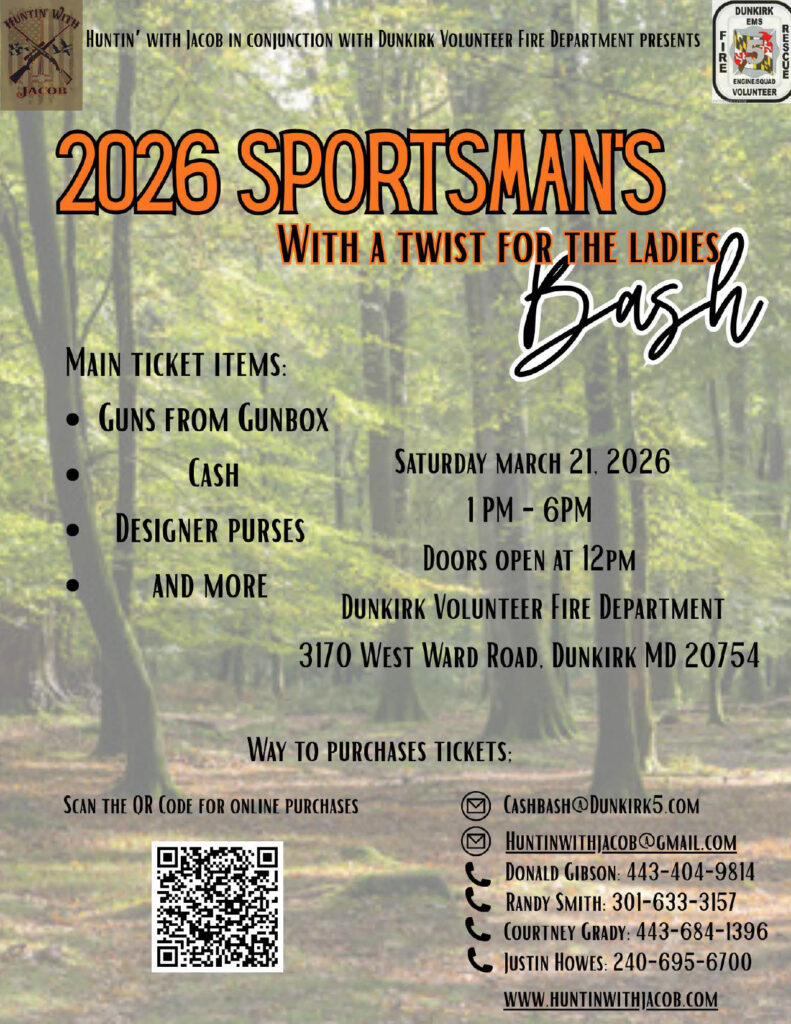 Huntin’ With Jacob, in conjunction with the Dunkirk Volunteer Fire Department, is excited to host the 2026 Sportsman’s Bash – With a Twist for the Ladies! Join us for an afternoon packed with great prizes, good food, and a whole lot of fun while supporting two community-focused organizations.